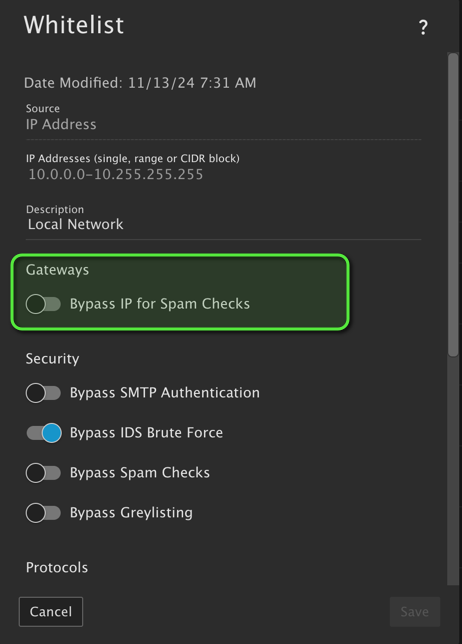 If you select the gateway's entry in the Whitelist and enable this setting, it should have the desired effect: