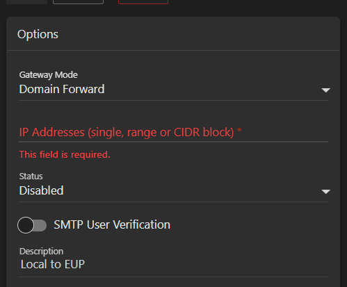 We're actively making changes to these sections. We're already moving away from being able to define a range in this spot because it made no sense. It will be Server Address now, allow in a domain name or IP and we'll resolve it. I'll make sure we accept a port as well.