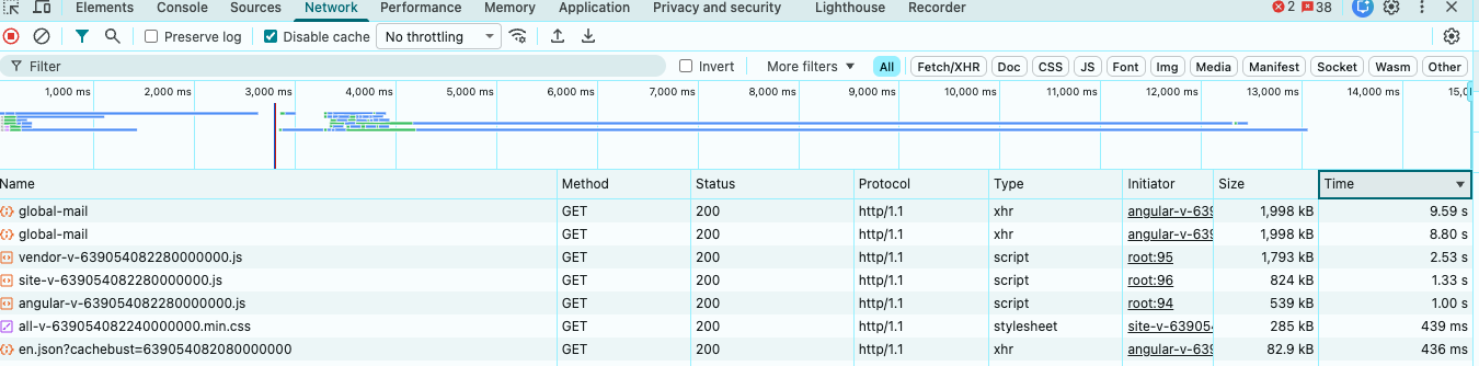 When proxying, the global-mail takes 10-25 seconds to load when logging in as a system administrator.