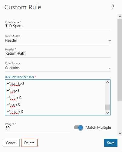 X-SmarterMail-SpamDetail: pts rule name description